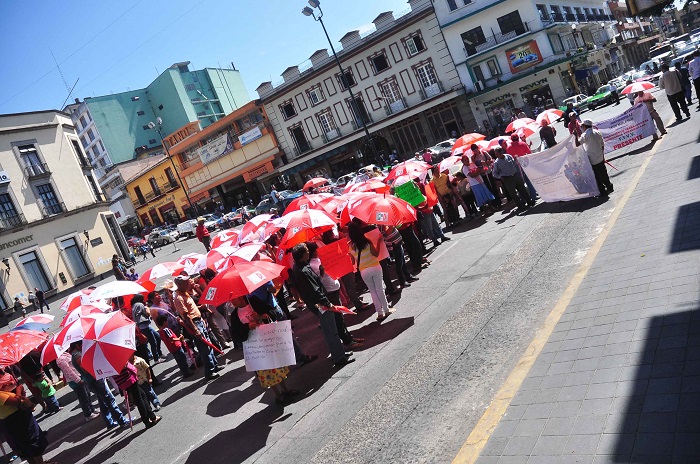 Con sombrillas del PRI, los casi 50 manifestantes e integrantes de diversas agrupaciones, decidieron bloquearon por un par de minutos la avenida Enríquez, paralizando momentáneamente el tráfico vehicular.
