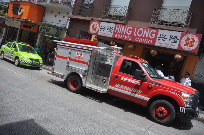 Por descuido de un trabajador del restaurante de comida china, ubicado en la calle Carrillo Puerto, se produjo un flamazo en la cocina, que llegó hasta el techo y quemó algunos cables.