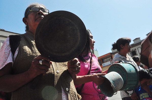 Medio centenar de habitantes de Xalapa y de Tecolutla –con cazuelas y ollas en mano- llegaron a la plaza Lerdo, para pedir la entrega de apoyos a la vivienda a través del programa Nacional de la Cruzada contra el Hambre.
