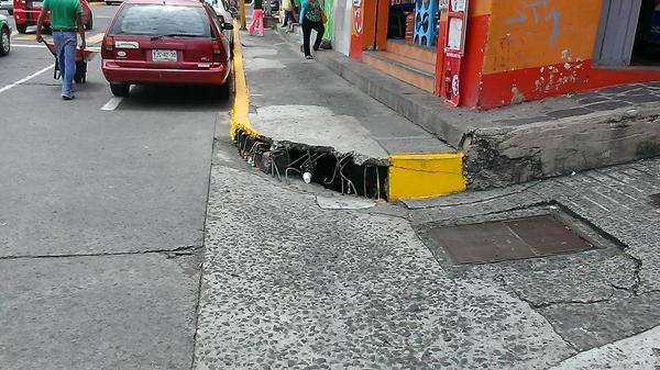 En la fotografía se pueden apreciar las varillas de la estructura, algunas chuecas y otras rotas, que debido a la altura de la banqueta representan riesgos para los peatones, puntualmente en este temporada de lluvia.