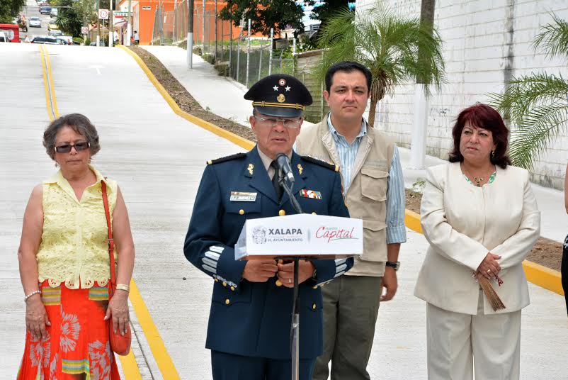 Xalapa, Ver.- Al acompañar al alcalde Américo Zúñiga Martínez a la inauguración del pavimento hidráulico de la calle Chapultepec en la colonia Independencia, en donde el Ejército Mexicano tiene una unidad habitacional, el General Germán Javier Jiménez Mendoza, Comandante de la 16ava. Zona Militar, refrendó el compromiso de las fuerzas castrenses con el Ayuntamiento de Xalapa.