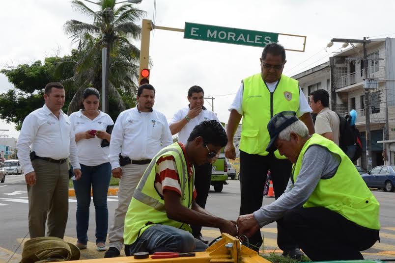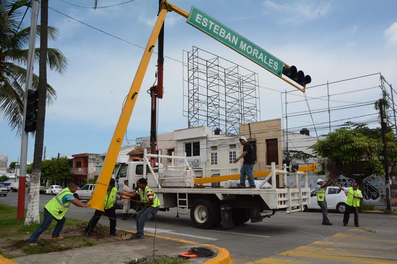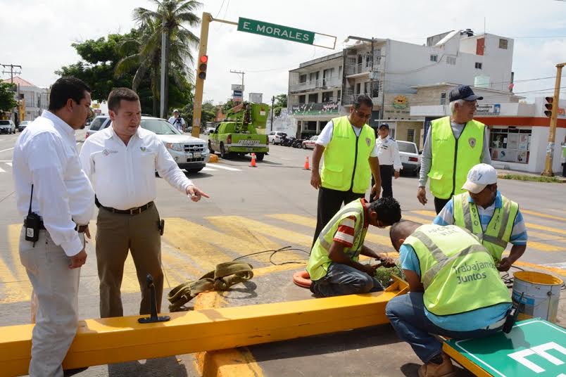 Asimismo dio a conocer que se están reparando o reponiendo las banderas de los semáforos, y explicó que debido a que el nivel de salinidad en el ambiente de Veracruz es alto, la mayoría de las estructuras de semáforos presenta un gran nivel de corrosión, por lo que se está realizando la aplicación de pintura acrílica en ellas, con la colaboración de la Dirección de Centro Histórico, Mantenimiento Urbano y Ornato, quienes también están pintando las banquetas.