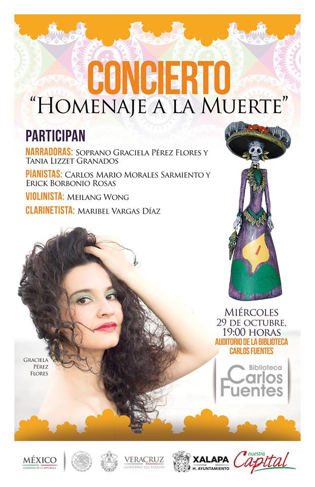 Xalapa, Ver.- Como parte de las actividades artísticas y culturales que se realizan por la celebración del Día de Muertos, el Ayuntamiento de Xalapa invita al público en general al concierto “Homenaje a la muerte”, que se llevará a cabo el próximo miércoles 29 de octubre a las 19 horas, en el Auditorio de la Biblioteca Carlos Fuentes.
