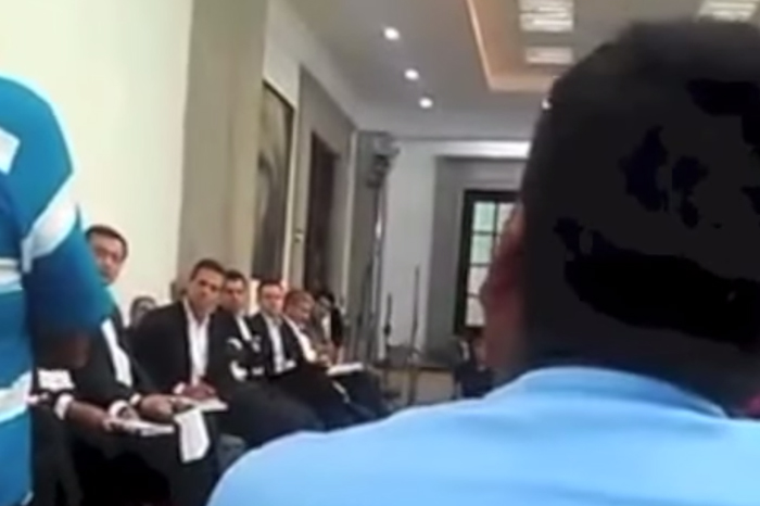 La intervención de De la Cruz quedó grabada en un video en el que se observa a Peña Nieto, sin corbata, sentado entre el Secretario de Gobernación, Miguel Ángel Osorio Chong, y el procurador Jesús Murillo Karam. Ante las palabras del guerrense, se obseva que Peña Nieto asiente. Frente al mandatario y al resto de su gabinete, los familiares de los 43 desaparecidos portaban las fotografías de las víctimas, las mismas con las que acudieron a la conferencia de prensa.