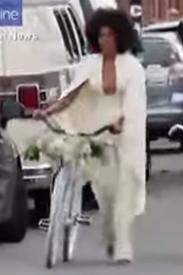 La hermana de Beyoncé, Solange Knowles, optó por llegar a su boda en una bicicleta para darle originalidad al evento.