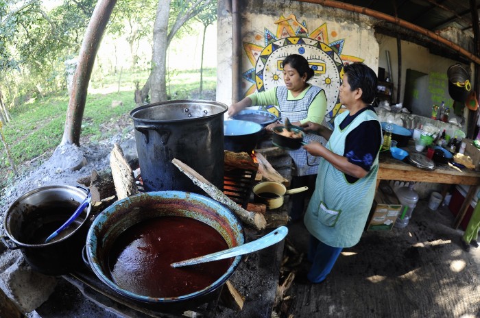 Un día en la cocina del campamento Centinelas del Río Jalcomulco comienza a las siete de la mañana, con la preparación del desayuno. A media mañana se baja al pueblo a comprar los insumos para la hora de la comida, y los trabajos terminan con la cena, a las 8 de la noche.