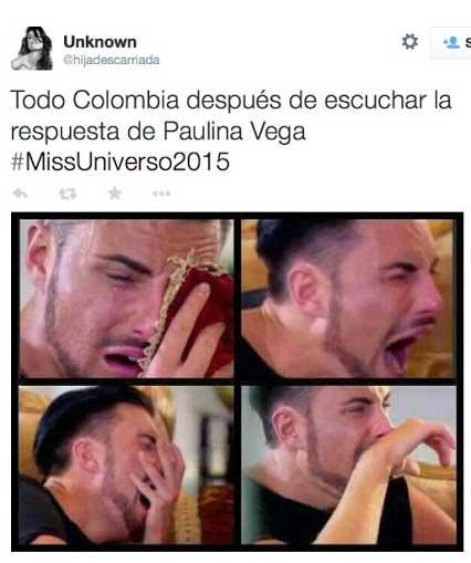 Paulina Vega fue coronada ayer como Miss Universo 2015, pero los cibernautas le han abollado la corona burlándose de ella con memes por la respuesta que dio en la fase final del certamen.