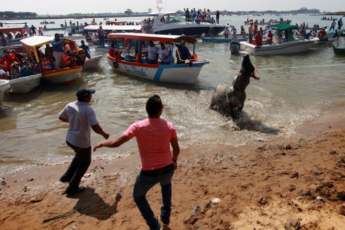 -No, no va a ser maltrato porque se sube el toro a la balsa, se cruza el río, y del otro lado se recoge al animal, y se le lleva a donde tiene que estar, en un rancho, en una finca, en un corral.