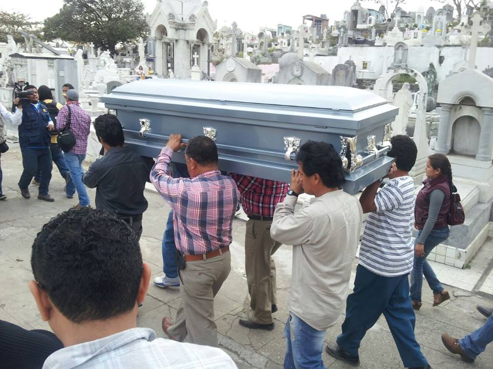 Veracruz, Ver.- Familiares y amigos llegaron al Panteón Particular de Veracruz pasadas las 16 horas para despedir a Moisés Sánchez Cerezo, reportero y activista social de Medellín de Bravo.