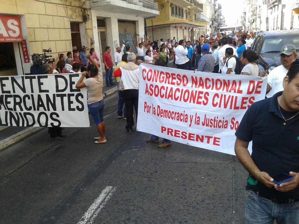 Veracruz, Ver.- Un grupo de comerciantes de varias asociaciones civiles tomaron algunas calles en el centro histórico de Veracruz para exigir a la autoridad municipal que cesen los abusos que - de acuerdo con ellos - han realizado los inspectores de comercio.