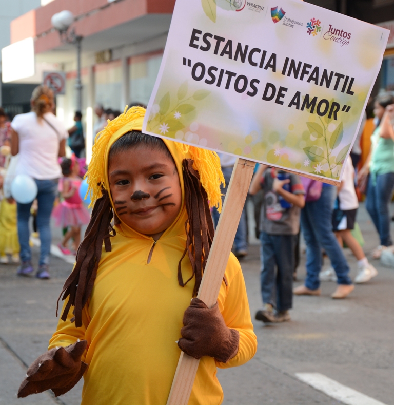 A lo largo de la avenida Independencia desfilaron niños con gran entusiasmo y alegría bailando canciones infantiles, disfrazados de abejitas, elefantes, monitos, conejos, margaritas, girasoles y hadas, entre muchos otros personajes. De igual manera los infantes estuvieron acompañados por sus familiares y personal de las escuelas, cuidándolos en todo momento.