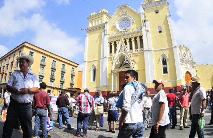 Xalapa, Ver.- Habitantes de Teocelo, Cosautlán de Carbajal, Ixhuatlán de los Reyes y Ayahualulco, protestaron en el primer cuadro de la ciudad impidiendo la vialidad en la calle Juan de la Luz Enríquez en el centro de Xalapa, exigiendo la reconstrucción de caminos y la carretera Teocelo-Cosautlán, pues como consecuencia de las pésimas condiciones en la que se encuentra, dos personas perdieron la vida.