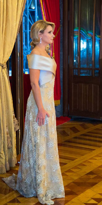 “El vestido, color marfil tipo imperio con bordados, se diferenció de los años anteriores justo por su color sobrio”, publicó la revista caras en su edición on line.