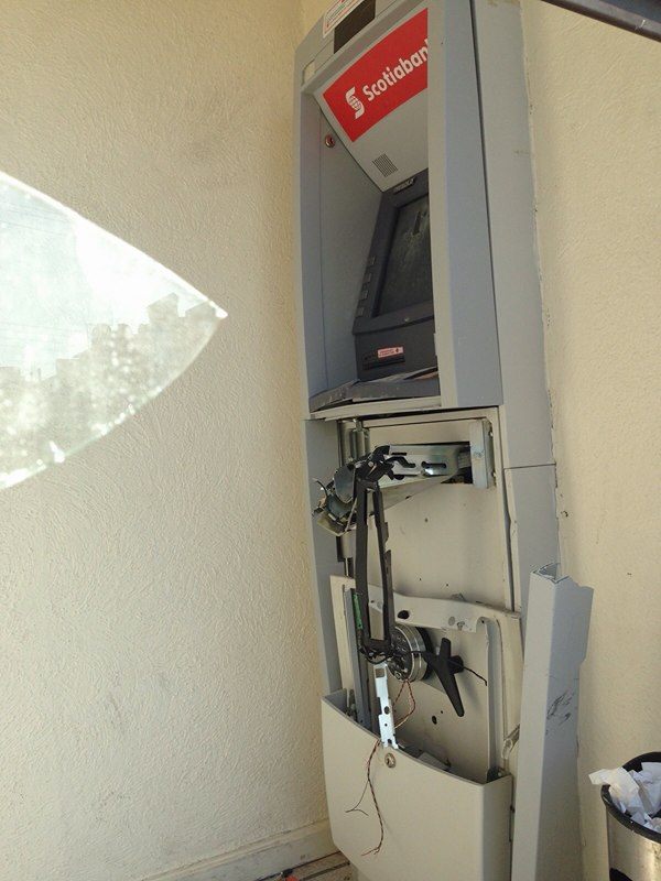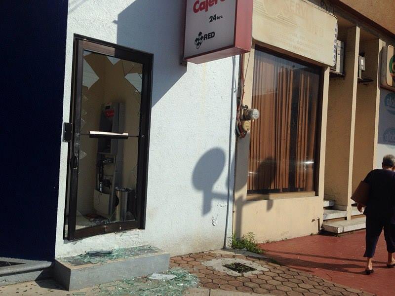 Las autoridades reportan que se encontró en el lugar un pico, con el que dañaron tanto la estructura del cajero automático como la puerta del cubículo.