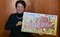 El premio número dos, un cheque bancario por 540 mil pesos, fue para el boleto número 060989 de Laura, educadora jubilada quien precisamente el día que recibió la llamada de notificación estaba preocupada porque no había recibido el depósito bancario de su pensión; cuando respondió el teléfono pensó que era broma y al referirle el nombre de su hermana, quien le vendió el boleto, se convenció.