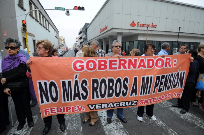 Xalapa, Ver.- Los pensionados y jubilados del estado presentarán quejas contra el Gobierno del estado ante la Comisión Estatal y Nacional de Derechos Humanos, así como en la Corte Interamericana de Derechos Humanos por la violación de un derecho humano al retener o retrasar el pago correspondiente a sus pensiones, señaló la representante de la Coalición de Pensionistas Independientes del Estado de Veracruz (COPIPEV), Adriana Chávez Tejeda.
