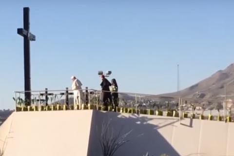 Francisco dejó una foto para la historia cuando hizo la señal de la cruz con la mano a las personas que saludaban al otro lado del Río Bravo.