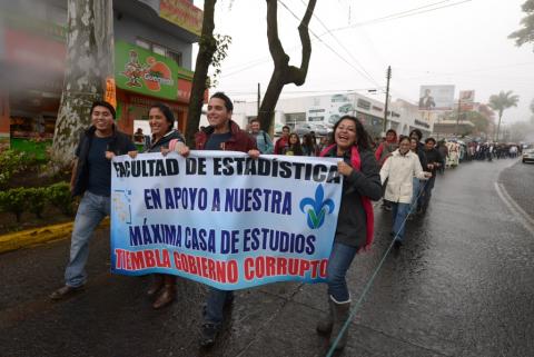 En Xalapa, la rectora Sara Ladrón de Guevara encabezó la marcha y el mitin y ofreció un discurso titulado “Nos deben”, en el que, entre muchos otros temas, señaló: “Nos deben el derecho a soñar. Nos deben la esperanza de un mejor futuro. Nos deben la confianza en las instituciones. Nos deben una juventud sin miedos. Nos deben a los desaparecidos. Nos deben la paz de los violentados y la de sus familias. Nos deben recursos que son obligaciones, porque no son de ellos, fueron otorgados por el pueblo. Nos deben los derechos de nuestros jubilados”.