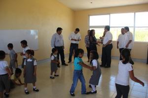 En este centro educativo inauguró el aula número cuatro y confirió material académico y didáctico.