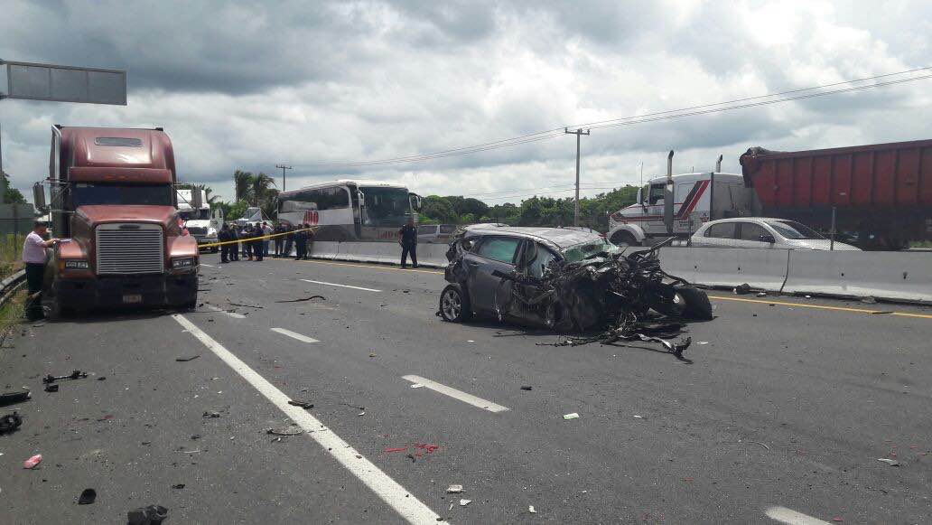 Sin embargo, a menos de 300 metros de la caseta de peaje de Plan del Río, chocó contra un tráiler con placas 48-AA-5R del Servicio Público Federal, desbaratando por completo la unidad.