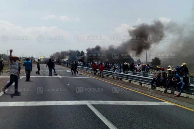 Un grupo de unas 100 personas bloqueó la autopista Puebla-Orizaba a la altura de Quecholac, en protesta por la detención de 30 pobladores de Palmarito Tochapan vinculados al enfrentamiento con el Ejército que dejó cinco civiles y dos militares muertos.