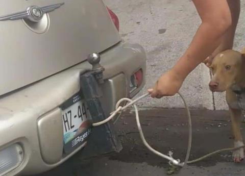 La conductora bajó del auto y desamarró de la defensa al can, que ya había corrido por varias cuadras, bajo el intenso calor y chorreando sangre de sus extremidades.