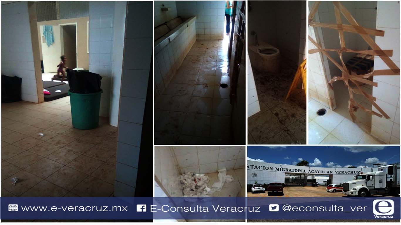 Xalapa, Ver.-En la estación migratoria de Acayucan las autoridades del Instituto Nacional de Migración (INM) tienen viviendo entre excremento a miles de migrantes de distintos países que han sido asegurados en Veracruz y otras entidades del país. Algunos cumplen 40 días hacinados y en protesta iniciaron una huelga de hambre. La revuelta les valió castigos.