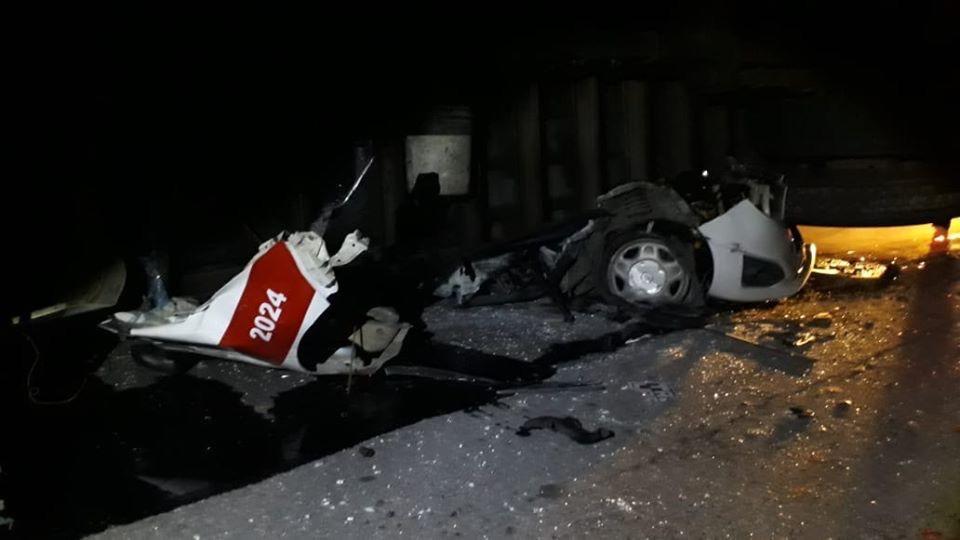 Xalapa, Ver.- La madrugada de este 24 de diciembre, a 4 kilómetros después de la localidad de Aguilera, un camión que transportaba frutas y verduras volcó sobre un taxi que transportaba a una familia completa.
