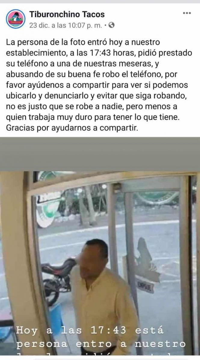 "El señor desesperado nos pidió de favor un teléfono para hablar y comunicarse con alguien, por lo que nosotros ofrecimos nuestro teléfono local, a lo que el sujeto se negó pues dijo que su teléfono era larga distancia y no podría hacer alguna llamada de tal, uno de nuestros compañeros quiso ayudarlo prestándole su teléfono celular" versa la publicación.