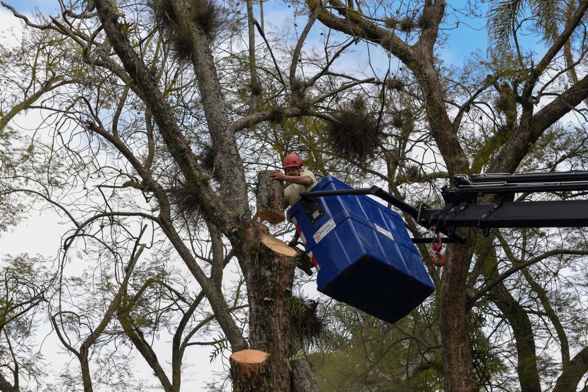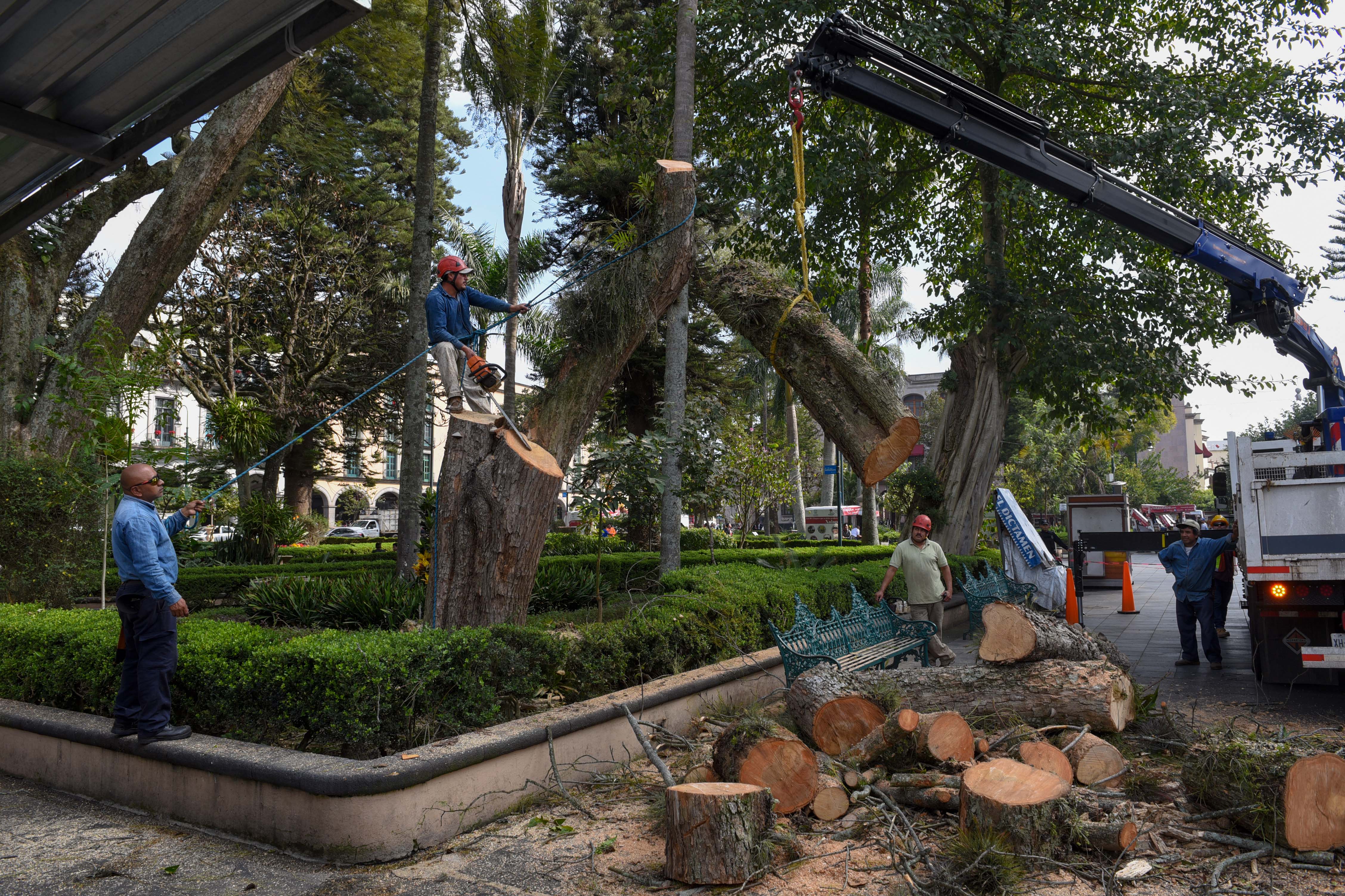 Xalapa, Ver.- Por representar un riesgo alto de caída, personal del Departamento de Biodiversidad y Cambio Climático de la Dirección de Medio Ambiente y Sustentabilidad retiró este miércoles un árbol de Jacaranda del parque Benito Juárez. El ejemplar registraba descortezamiento, fractura de ramas, grietas, insectos barrenadores y hongos que se alimentan de madera podrida.