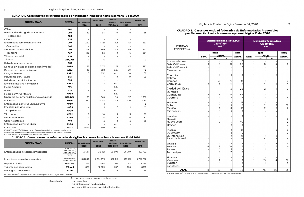 20:00 | #ÚltimaHora En México se registraron 163 defunciones por covid-19, que ya suman mil 732 muertes en total. Mientras que el número de casos confirmados acumulado aumentó a 17 mil 799, de acuerdo con los datos que presentó este miércoles la Secretaría de Salud.