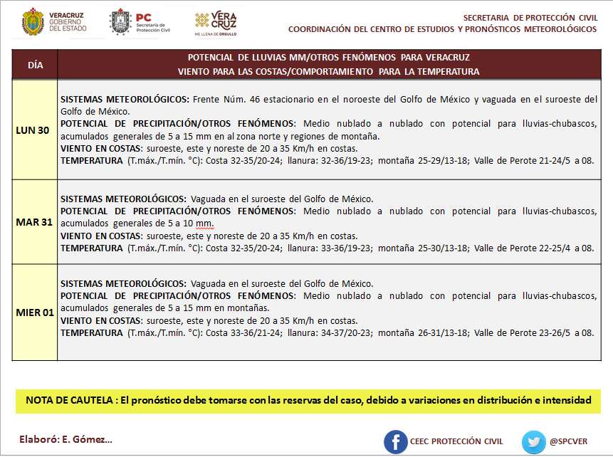 Autoridades de PC piden a la población mantenerse informado y atentos a los siguientes pronósticos.