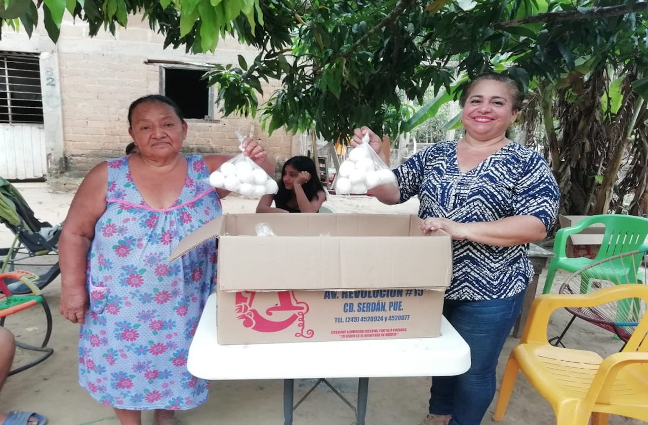 A su lado esta Margarita esposa de Jorge, quien actualmente vive en Minatitlán y fue la encargada de comprar los huevos que este día se entregaron.