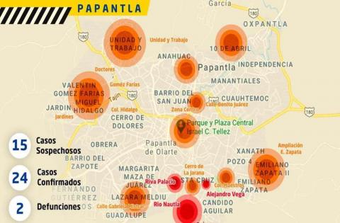 Xalapa, Ver.- Por medio de un gráfico, el ayuntamiento de Papantla delimitó las "zonas de alto contagio" en la cabecera del Pueblo Mágico.