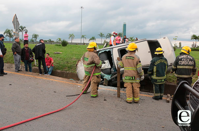 Córdoba, Ver.- Un hombre y su hija de 10 años resultaron lesionados al volcarse el vehículo en el que viajaban cuando ingresaban a la autopista Puebla-Veracruz en el trébol de El Diamante.
