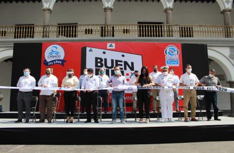 Veracruz, Ver.- El día de hoy se cortó el listón inaugural del Buen Fin 2020 en Veracruz, iniciando la jornada comercial más importante del año. En el evento participó el alcalde de la ciudad, Fernando Yunes Márquez, junto con el presidente de la Canaco Servytur, José Antonio Mendoza García.