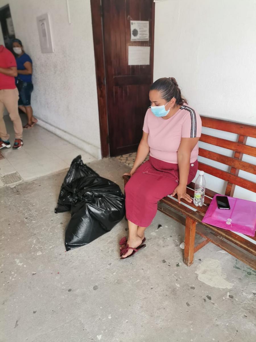 Natalia esperó sobre una banca de madera. “Ahí estábamos y veíamos que las bolsas pasaban de una oficina a otra porque nadie soportaba el olor”, refirió Lenit Enríquez. Personas que acudieron a dicho lugar administrativo notaron con indignación la diligencia.