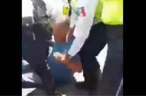 A través de redes sociales fue difundido un video donde se observa a elementos de Tránsito de la Policía Michoacán intentar subir por la fuerza a una patrulla a un hombre de la tercera edad y forcejear con un grupo de mujeres que intentaba evitar la detención.