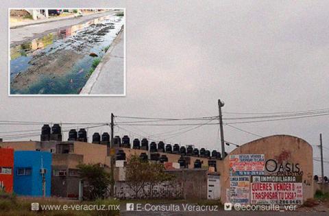 Veracruz, Ver.- El brote de aguas negras en las calles y los baches de gran magnitud que los conductores tienen que esquivar son el primer indicio de que se llegó al fraccionamiento Oasis en la zona norte del puerto de Veracruz.