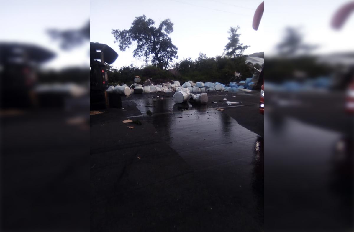 Vuelca camión cargado con solución de resina en Cumbres de Maltrata