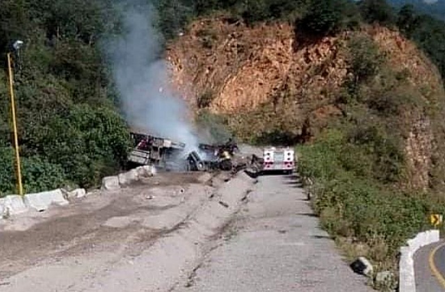 Los hechos se registraron la mañana de este jueves 11 de noviembre cuando al quedarse sin frenos el tráiler ingresó a la rampa de emergencia y comenzó a incendiarse en el kilómetro 234 con dirección al puerto de Veracruz.