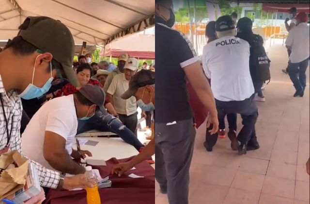 Sin pensarlo, comenzaron a quitar las vayas metálicas y lograron ingresar a las carpas donde estaban las urnas y allí arrojaron mesas y cajas, según consta en vídeos que se han replicado en redes sociales.