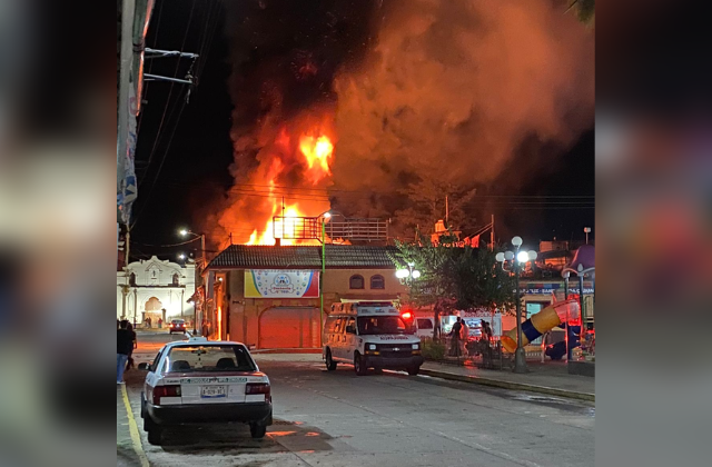 Se incendian negocios frente a Palacio Municipal de Zongolica