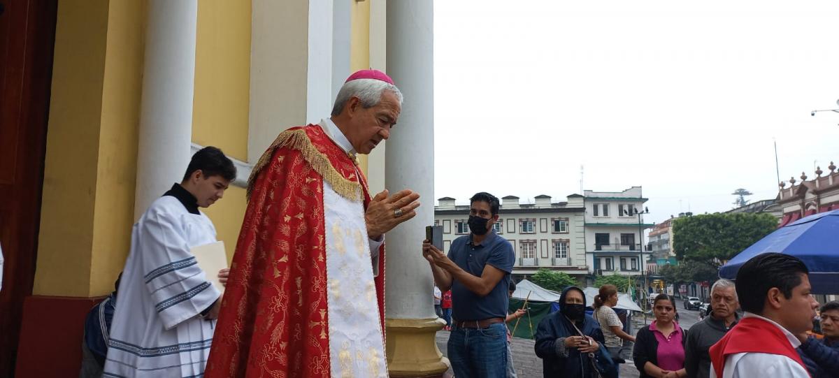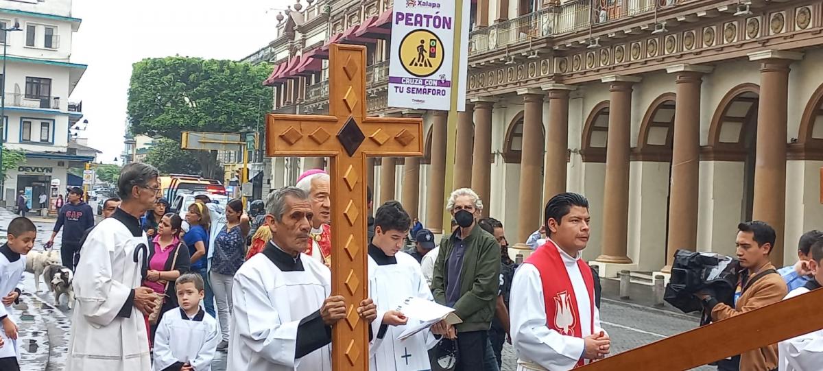 El arzobispo de la Arquidiócesis de Xalapa, Jorge Carlos Patrón Wong acompañó el viacrucis que se llevó a cabo en Xalapa