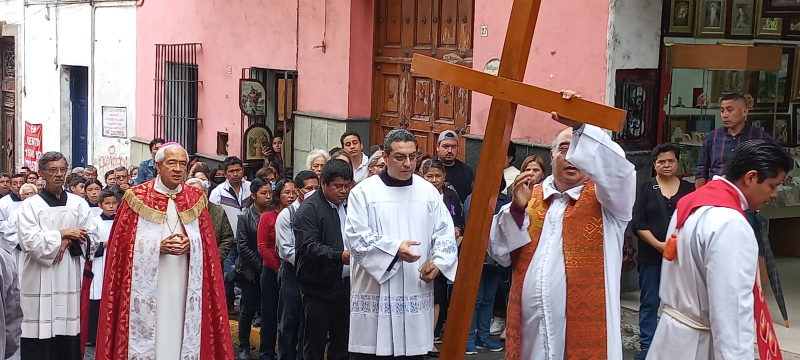 Desde las 11:20 de la mañana salieron para llevar a cabo el viacrucis. Los católicos se reunieron al interior de la Catedral. Este día en las iglesias, las imágenes, principalmente el crucifijo, se cubren con tela morada, en señal de la ausencia de Jesús.