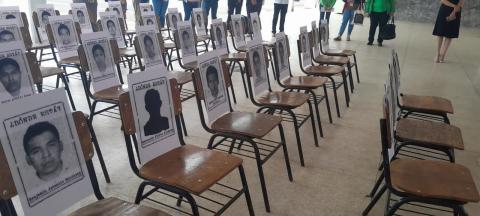 En la Normal Veracruzana se llevó a cabo la conmemoración, donde colocaron 43 pupitres con las fotografías de los desaparecidos. También se ofreció una reseña del hecho que marcó y conmovió a los mexicanos.