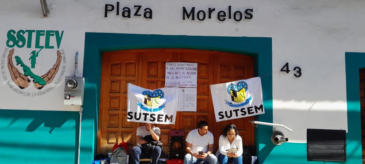 La manifestación es encabezada por integrantes del Sindicato Unificador de Trabajadores del Estado y el Magisterio (Sutsem), quienes desde el pasado lunes 11 de noviembre mantienen un plantón en las instalaciones ubicadas en la calle Morelos, en la colonia Centro de Xalapa.