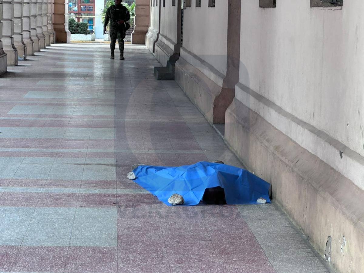 El cuerpo quedó tendido a unos metros de la entrada principal del Palacio Federal. Elementos de la Policía Municipal acudieron al lugar y confirmaron que el hombre ya no presentaba signos vitales, por lo que procedieron a cubrir el cuerpo con una sábana azul.
