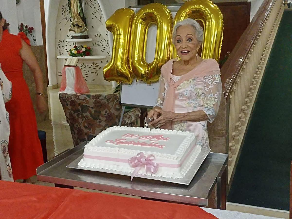 En redes sociales se dieron a conocer fotografías de su celebración, donde se le ve sonriente, con unos globos dorados detrás suyo formando el número 100 y un pastel blanco con un moño rosa, en donde se lee; “100 Años. Felicidades”.