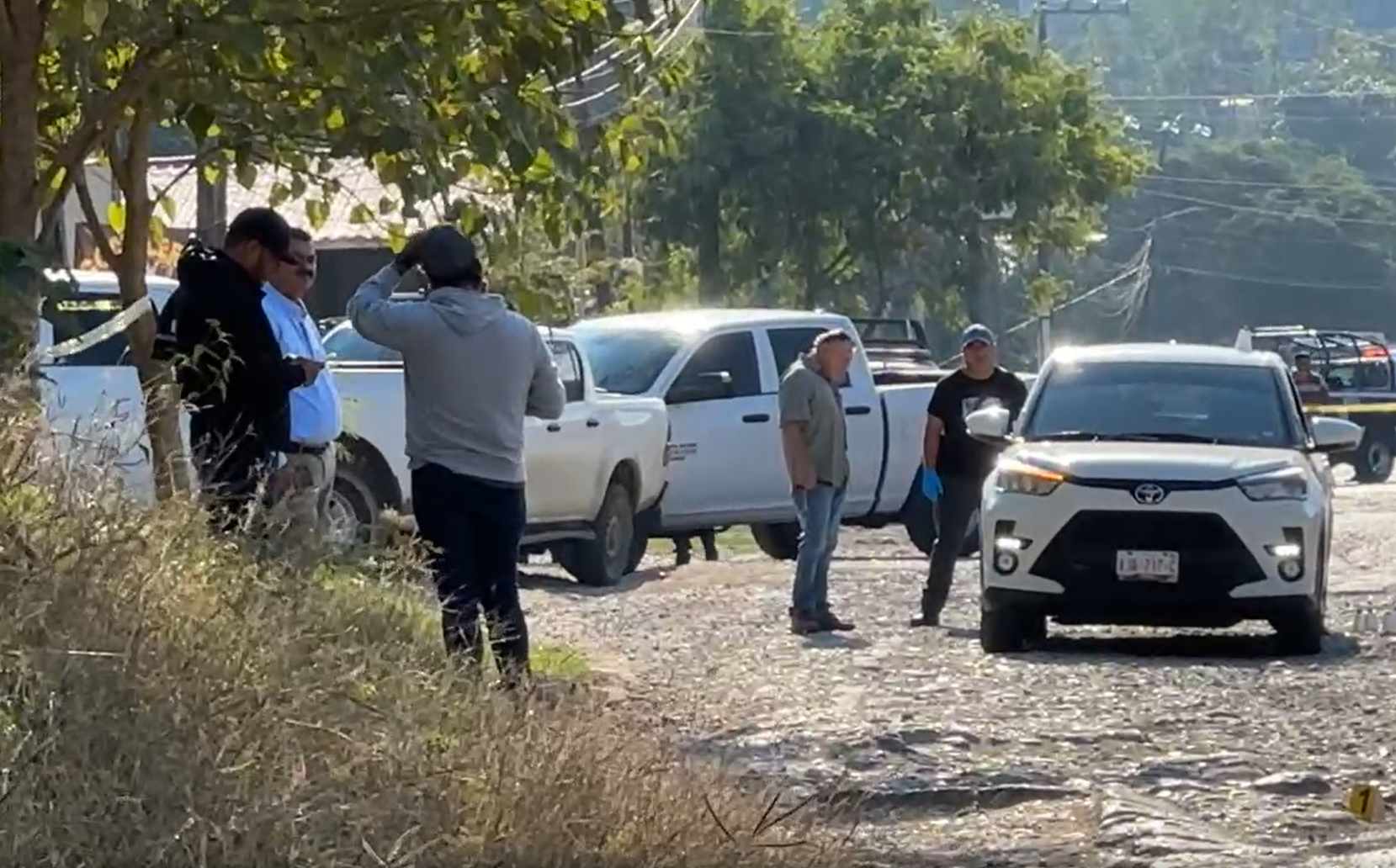 El conductor vestía camisa gris de manga larga y recibió múltiples tiros en el rostro y el pecho. A su lado, el acompañante, de complexión robusta, también presentaba graves heridas causadas por proyectiles en la misma zona del cuerpo.
